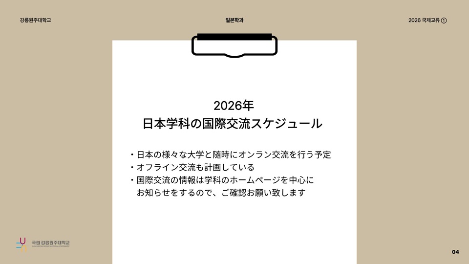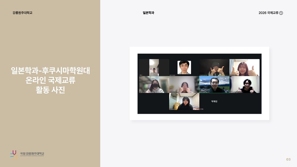 fnctId=bbs,fnctNo=736 [국제교류] 2026 후쿠시마학원대학 온라인 국제교류 보고서 글번호 328196 작성일 2026.03.06 작성자 엄태봉 조회수 560 첨부파일 첨부파일이(가) 없습니다.