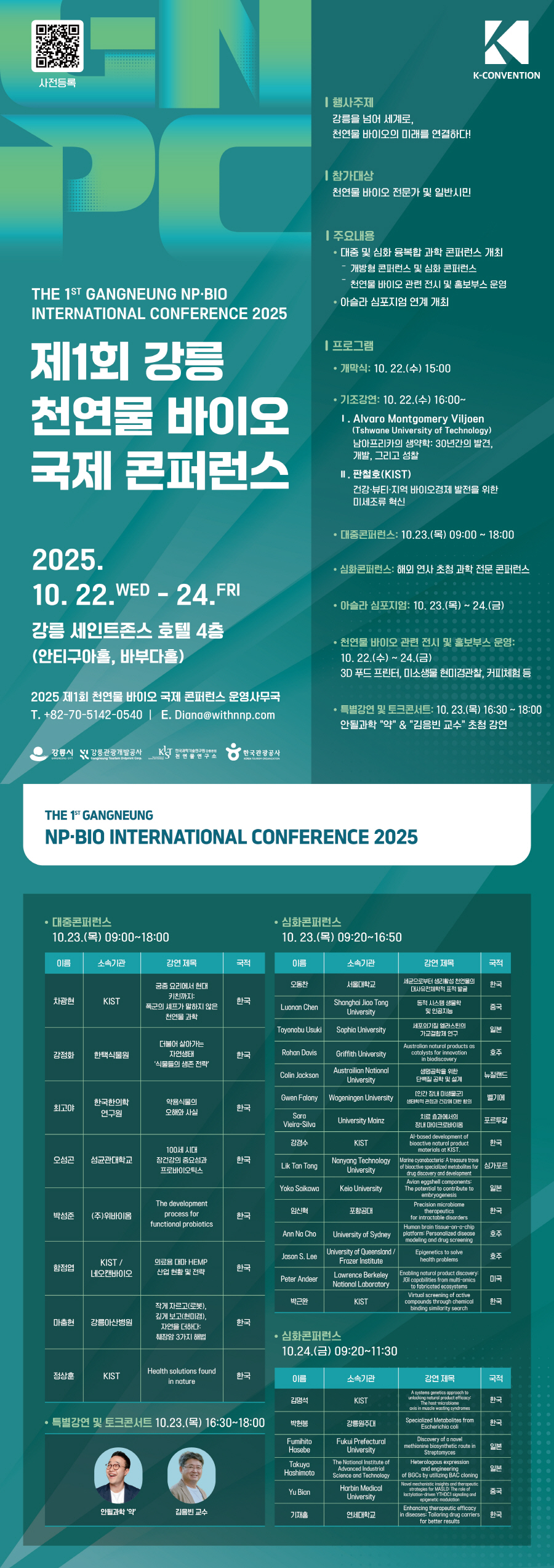 fnctId=bbs,fnctNo=1619 제1회 강릉 천연물 바이오 국제 콘퍼런스 행사 안내 작성일 2025.10.16 작성자 지역협력과 조회수 2450 * 붙임: 행사 포스터 1부. 첨부파일 강릉관광개발공사_천연물바이오국제콘퍼런스.jpg