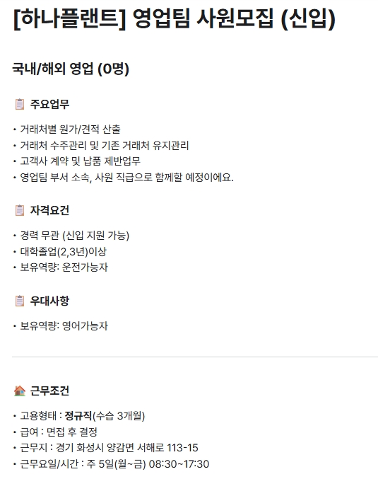 fnctId=bbs,fnctNo=1253 [하나플랜트] 영업팀 사원 모집(신입) 작성일 2025.10.28 작성자 최지은 조회수 1168 **학과 졸업생이 많은 기업입니다. 관심 있는 학생은 연락주세요! 첨부파일 첨부파일이(가) 없습니다.